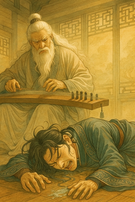 Но с первых же нот Циньцзян понял, что что-то не так. Это была его собственная техника — Гром Небесных Сил. Он не успел даже осознать происходящее, как наставник вплёл в мелодию внутреннюю силу.