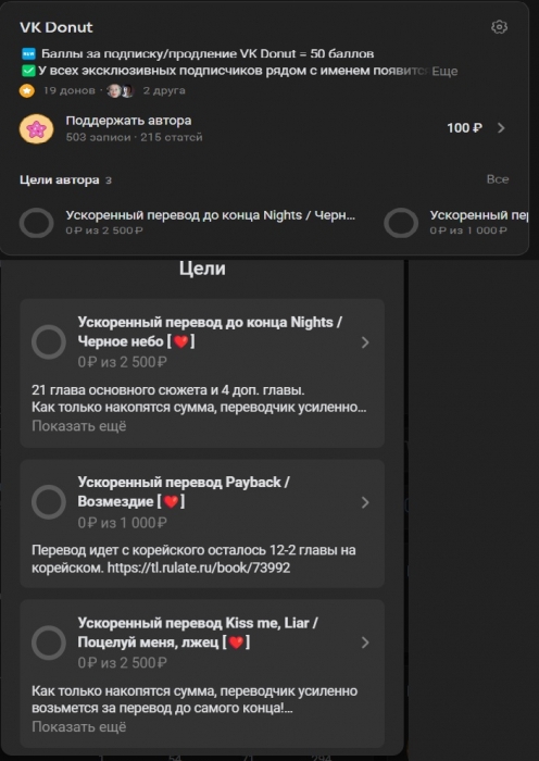 В контакте мы открыли новую функцию для ускорения переводов! Теперь стало проще, переводчики, что согласны участвовать в ускоренных переводах сами выставляют свои проекты. Теперь вы можете донатить на ускорение перевода сразу в ВК. И самое главное - теперь вы можете делать это сообща! Если несколько человек выберут один проект, сумма уже не будет казаться такой большой! 🐰