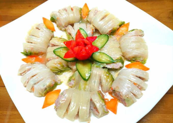 Капуста должна быть свежей и нежной. Возьмите те листья, где половина белая, только так можно сделать красивую «руку Будды». Затем все блюдо готовится на пару в течение чашки чая.