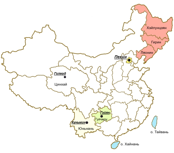 3 Маньчжурия – историческая область на северо-востоке Китая. В настоящее время равнинную часть китайской Маньчжурии занимают провинции Хэйлунцзян, Гирин и Ляонин. Другое распространённое название – "три восточные провинции".