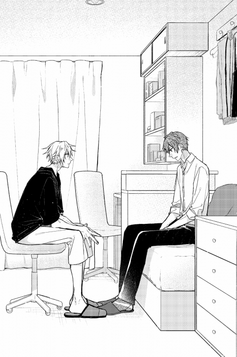 Думая о том, что будет хорошо, если он окажется добрым человеком, Кагиура чувствует укол чего-то похожего на тоску по дому. Ещё неделю назад он носил форму средней школы, а теперь собирается встретиться с совершенно незнакомым человеком, который будет его соседом по комнате.