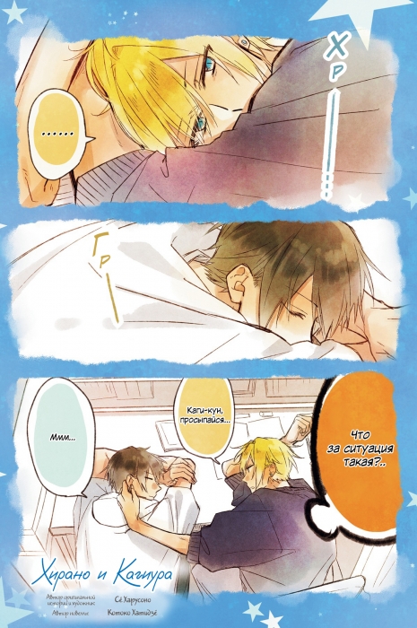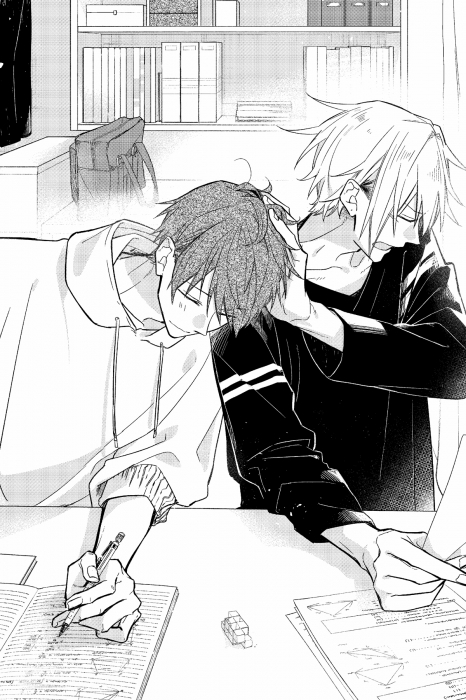 — Достань учебник, — говорит Хирано, сидя в помятой домашней одежде и пытаясь подавить зевок, и Кагиура послушно достаёт его из сумки.