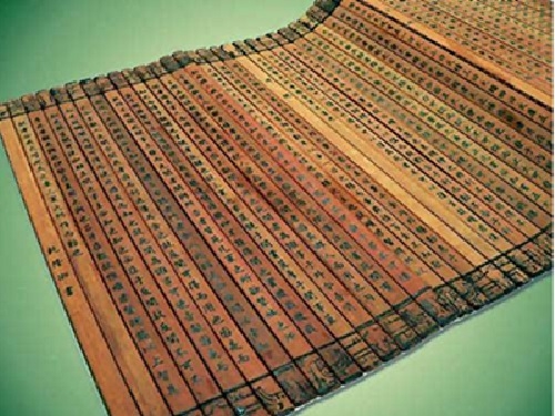 Именно из тростниковых листьев найти не удалось, это свиток из бамбуковых дощечек.