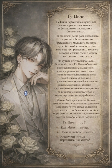 Гу Цичи переселился пушечным мясом в роман о настоящем и фальшивом наследнике богатой семьи.