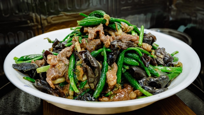 Жир из копчёной грудинки начал вытапливаться, и накопленные за долгое время вкусы высвобождались, словно туман, клубясь и медленно заполняя кухню. Ин Кунту всыпал горсть чеснока и сушёного перца; едва аромат поднялся, он тут же высыпал в котёл изумрудно-зелёный папоротник. Папоротник был только что собран, ещё хранил в себе горную свежесть, и стоило ему смешаться с насыщенным вкусом копчёного мяса, как едва заметная горчинка мгновенно исчезла, уступив место чистому, яркому вкусу.