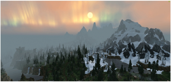 Юй Хао оглянулся и увидел, что находится на огромном фьорде, который окружали горы и море. Внизу действительно было поселение, примыкающее к морю, в то время как возвышенности фьорда плавно спускались вглубь берега. Это было немного похоже на Ревущий фьорд из «World of Warcraft».*