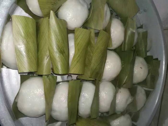 Тан Фэн передавал приготовленные ароматные листья Линь Юю, тот выкладывал на них клейкую рисовую муку, затем передавал отцу Тан, который маленькой ложкой набирал немного мясной начинки, клал её на лист и передавал заготовку Тан Амо. Тан Амо превращал всё это в клейкие рисовые шарики, завернутые в ароматные листья, и складывал их в другую пароварку.